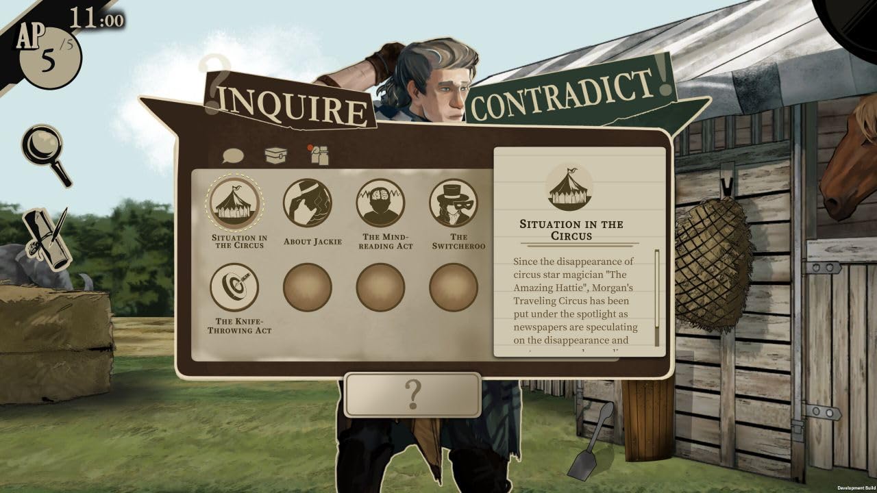 With only limited actions one can take before passing time, plan carefully about which clues to pursue and which locations to investigate.