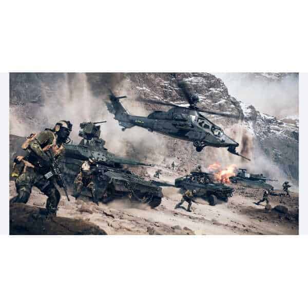 Wage all-out war with infantry and vehicle combat, class-based squad play, and cutting edge audiovisual immersion. Where fighter jets, tanks, skydiving Rpgs, heavy artillery, and high-intensity infantry combat become one. This is war that only happens in Battlefield.