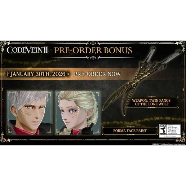 Experience Code Vein II’s unique gameplay mechanic, where the player drains and acquires blood from enemies to unleash a variety of skills. With the series’ new build system, you can freely customize weapons and skills to suit your own battle styles.